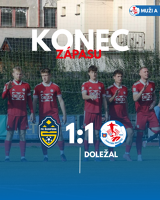 Do konce prvního poločasu jsme měli možnost skóre otočit, ale slibné šance jsme nevyužili. Ve druhé půli se hra vyrovnala, domácí byli o něco aktivnější, ale naše obrana i brankář Pobořil odolali. Koňařík, Dostál ani Doležal své střely mezi tři tyče nedostali, a tak se utkání uzavřelo remízou 1:1.